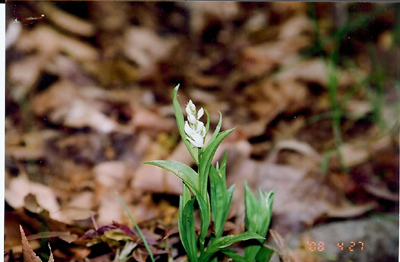 千里北公園のタイワンフウの林床でギンランが白い清楚な花をつけはじめた。 自生を確認してから今年で3年目になるが、少しずつ株数を増やしている。