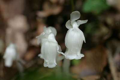 自然環境市民大学卒5期生同窓会で芦生山の家に一泊旅行。到着当日トロッコ道探索でギンリョウソウがあった。 和名は銀竜草で、茎に葉が退化した燐片が互生してつき、葉に包まれ全体の姿が竜に似ているからとのこと。