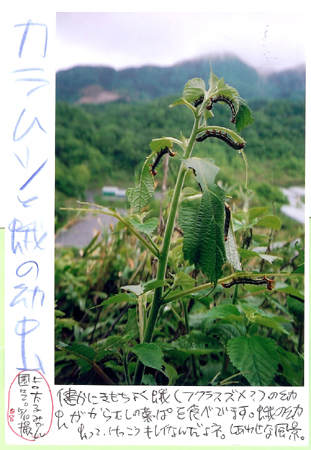 「カラムシと蛾の幼虫」