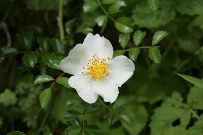 同じく武庫川渓谷沿いに見られたが、日当たりのよい山野、川原などに生えるつる性の落葉低木。 名前は葉の表面に光沢があることに由来している。 バラの園芸品種の接ぎ木の台木に使われているとのこと。