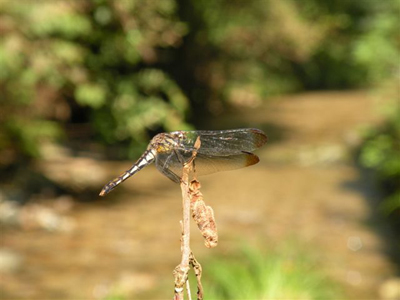 槇尾川の美しい流れをじっと見つめているようなノシメトンボの雌です。近くに真っ赤な雄も飛んでいました。