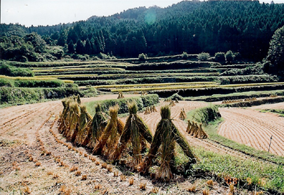 豊能の山深い里山の棚田で稲刈りが始まっていた。 棚田のまわりにはゲンノショウコやツリフネソウなどが花をつけ、ヒガンバナも咲き始め、ヘビも姿を見せた。 澄んだ空気で静かなたたずまいを見せていた。