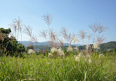 川原ではこれまでもススキは普通に見られるが、山の畑では普通ススキは見られない。しかし最近後継者不足で放置された畑が多くなり写真のようなススキが所々で見られるようになってきた。