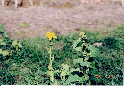 休耕田で菜の花がぼちぼちと黄色い花をつけはじめた。