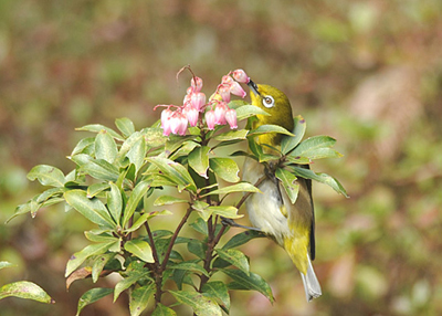 ![]() | 「アセビの花の蜜を吸うメジロ」