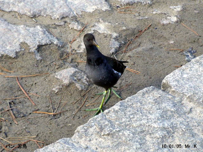 1月5日オナガガモに混じり、水際の陸地にバンの若鳥を発見。 昨年の1番子の様だが、2m余りに近づいてきたが全然人を恐れず。 毎年ヒナは孵っているが、このサイズの若鳥を見たのは初めてである。
