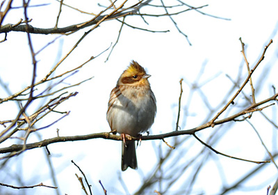 元日はまずフィールドに出かけるのが恒例、どんな小鳥たちに遭うのかが楽しみ。今年は種類は少なかったがミヤマホオジロに遭えたのは良かった。写真は茂みで採食中であったミヤマホオジロがこちらの姿に近くの枝に避難したところ。