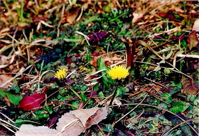 ふじのき公園の陽あたりの良い丘で、寒風の中ではあるが、早くもカンサイタンポポが黄色い花をつけていた。 この公園、雑木林などもあって里山の面影を残している。