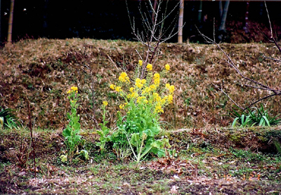 田んぼが数枚・休耕田・雑木林・竹林など、この場所の側を通る度に里山を思い出し、心がいやされる。 休耕田に寒風の中ではあるが、菜の花が黄色い花をつけ、春はもう近くにきているのかも知れない。