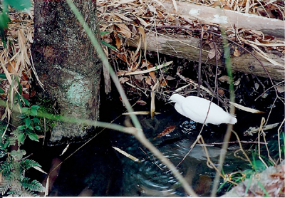 千里第4緑地の高町池から流れる小川でコサギがさかんに補食行動をとっていた。 水中を何度も足でかきまわしして、出てきた小動物を捕らえていた。