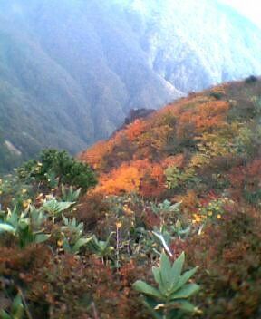 「冠山への道−頂上からみた紅葉−」