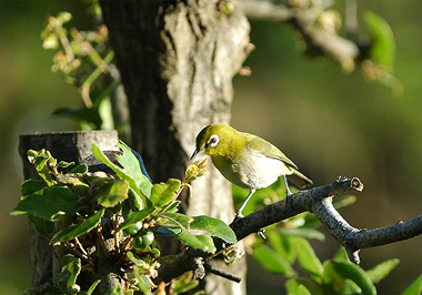 冬は群で行動しているメジロ、この時期は単独で見られます。