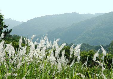 早朝トンボの羽化を見るためやってきた土手には絹毛のチガヤがいっぱい。