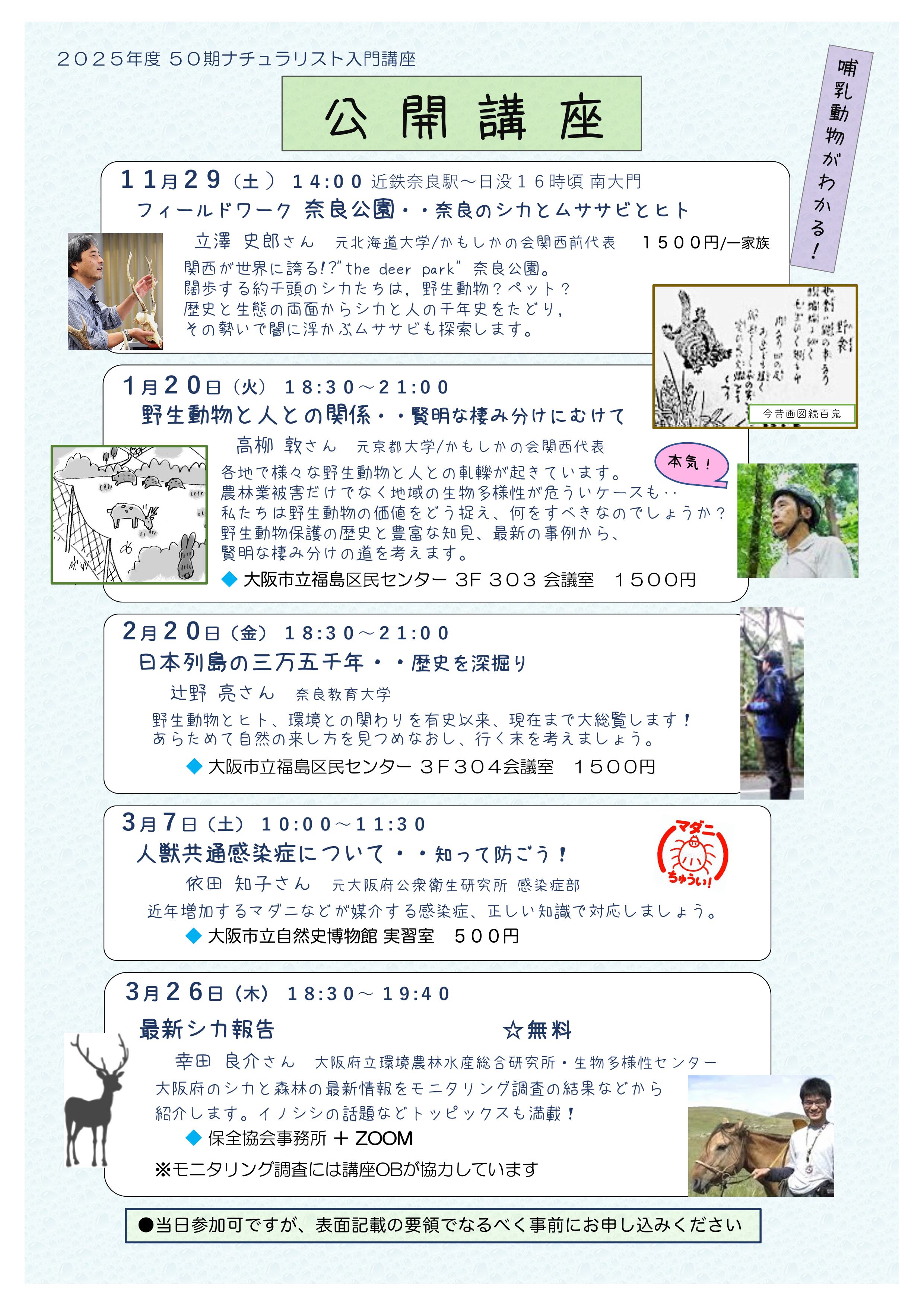 大阪の野生ほ乳類とその自然を理解するための入門講座です。