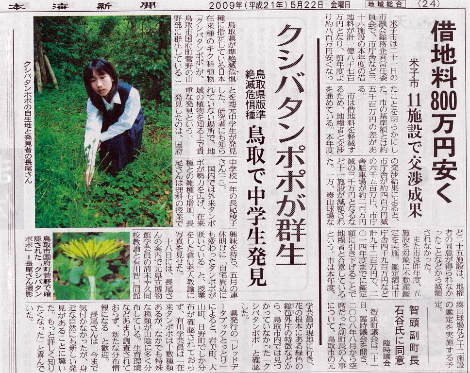 - 日本海新聞記事(JPGファイル) 掲載日:2009年5月22日(金)
