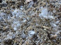 冷え込んだ朝の霜柱、画面にタップで庭のバケツに張った氷が5㎝を超えてました。 |
