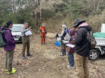 定例活動日は急遽古民家で餅つきとなり玄米餅を搗きました。画面にタップで男性陣6名が捏ねと搗きを分担しながら、なかなかのチームプレーでした。↓昼からは防鹿柵(作業地に新しく張る予定)の長さ測量をしました。