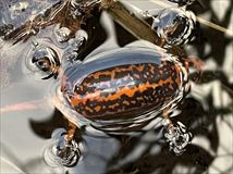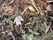 活動地に咲いたユキワリイチゲ、株が大きくなってきています。画面にタップでミヤマカタバミ。↓ 家の池にプカリと浮いていたアカハライモリ、死んでいるのかと思いつつくとひっくり返って泳ぎ出しましたがしばらくするとまたこの姿勢??
