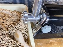 今年の味噌作り、大豆をつぶしているところ。今年は大豆を外のかまどで4時間蒸してみました。画面にタップで、いつものように米麹と塩と大豆で味噌団子。↓ 甕に味噌団子を詰め込み、最後は秋鹿の酒粕で蓋をします。これだと味噌が出来上がった時、表面にカビが生えません。