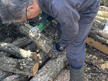 寒いうちに用意したコナラにシイタケの菌を打ち込む作業、画面にタップで菌を打ち込んだホダギ、このあとふた夏を静かに過ごすと秋にシイタケが出てきます。↓今年の冬、うちのシイタケがずっと途切れることなく出続けました。こんなことは初めてです。まさに地球温暖化を感じます。