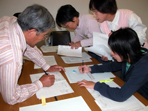 ![]() 植生調査データの取りまとめ方を説明する武田先生。 |