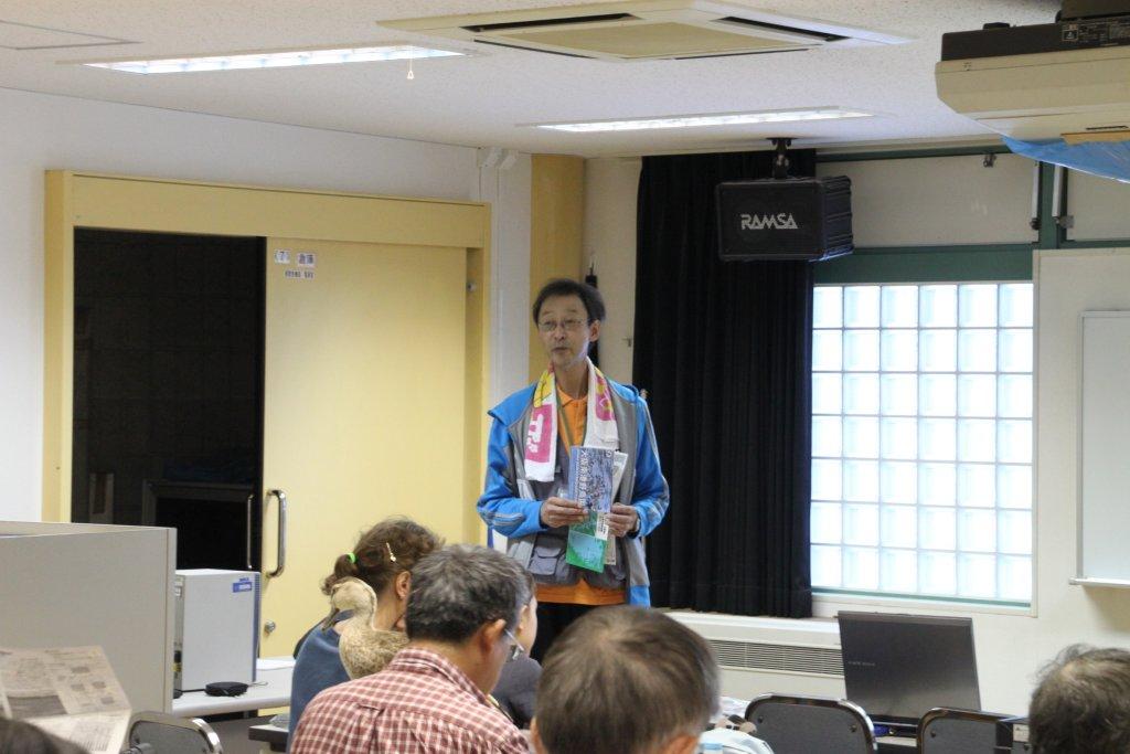 ![]() 講座に先立ち、南港野鳥園の石井園長の挨拶。 「大阪南港野鳥園」は、1983年に日本で最初の人工干潟として開園し、2001年に環境省の「日本の重要湿地500」に選定されている。 |