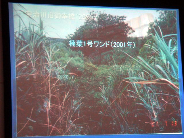 ![]() 河床低下の為に干上がった後植物が生い茂った楠葉ワンド。 |