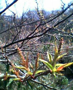 いま、畑にでてます。ウワミズザクラが芽生えてきました。