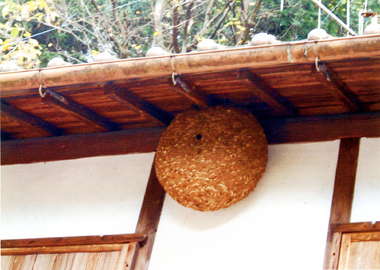 「この巣も。もうすぐ終わりやでな」 冷夏のためか、今年はスズメバチの巣がたくさん見られましたが、優しい家人に見守られて。こんなに大きくなりました。
