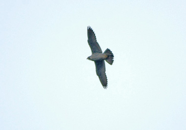 クロガネモチの実を群で食べているヒヨドリの上空にはタカが数種、あとで写真を見るとハイタカ、ツミ、ハヤブサの3種。そのうち一羽のタカが急降下してヒヨドリを襲いましたがこの時は失敗に終わったようです。当地でハヤブサを見るのは初めてです。