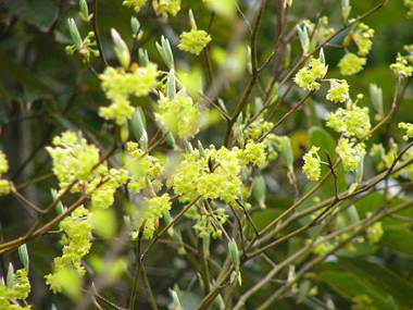 一つ一つの花は可憐な感じだが、このように枝いっぱいに咲き誇ると、結構派手やか な様相である。