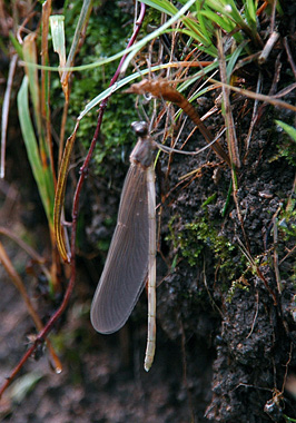 あの翅が真っ黒なハグロトンボ、前々から羽化のどの段階で翅が黒くなるのかに興味があった。 翅が伸長して伸び切り次に胴体が伸び始め、伸び終わるとしばらくして翅色が変化し出した。それまでの翅の色はピンクがかった肌色、それが徐々に変化して黒くなっていくが、飛立つ時はまだ完全に黒くなっていない。