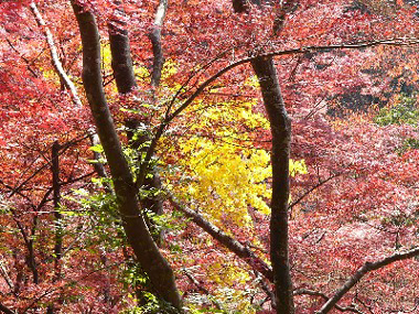 イロハモミジの紅葉と鮮やかな黄色のイチョウのコントラストが美しい。この配色は 天の配慮か。