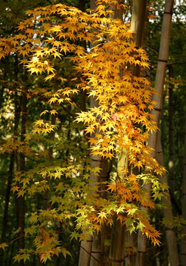 「秋の日差し(竹林とモミジ) 」