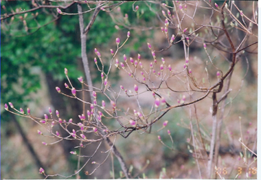 紫金山公園のコバノミツバツツジのつぼみが膨らんできた。なかにはチラホラと開化し始めたものもあり、紫金山の名の通り紫色が良い色合いとなっている。