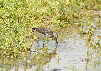 水が張られた畑に見慣れない水鳥。見るとイソシギに似ているが飛んだときの腰の白さがよく目立つ。 調べると当地では初めて確認する旅鳥のクサシギ。 警戒心が強く人影を見ると直ぐ飛び立つが、ここによほど良い餌があるのか直ぐ舞い戻ってくる。