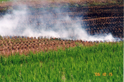 ヨシ笛ロードを散策中に、田んぼの野焼きに出会った。