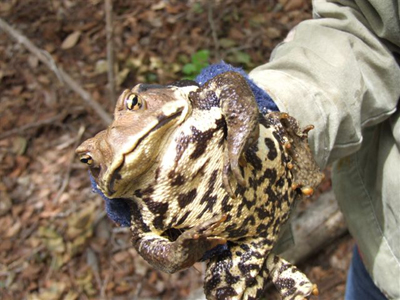 5月20日「櫻守の会」主催で行われた「親子森づくり体験」で子どもに捕まりました。可愛いという子どもと嫌がる親子。ガマいわく、おれの身にもなってみろ。 近くでは、ホオノキの花が咲いていました。