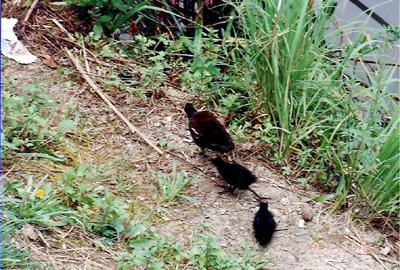 ピアノ池にバンの親子が生息している。 ヒナはかなり大きくなっているが、親の面倒見がよくて餌を与えたりしている