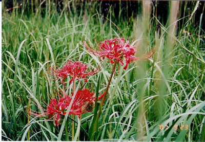 千里北公園周辺のヒガンバナが例年よりおくれて開花してきた。 少ない株数ではあるが、あちこちと広い範囲にわたっており、以前里山であったことの証しだと思われます。