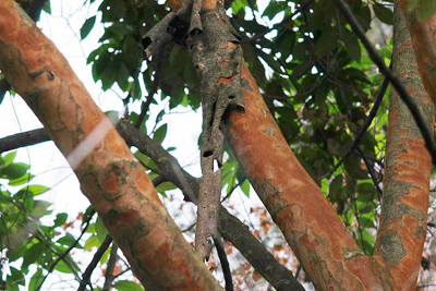 植物園の講師の方から冬の樹木の説明を受けている中で、「バクチノキ」なるものを初めて見ました。 写真に見られるように樹皮が剥がれ落ちる様が博打に負けて身ぐるみはがされる様に似ていることから命名された とのこと。 説明板にはサクラの仲間(バラ科)、常緑、花は9月頃、白色とありました。