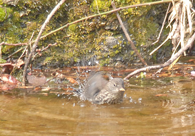 カワガラスの親鳥からの餌を最初はじっと待っていたがなかなか来ないので、そのうち水の中に潜ったり、水浴びをしたり、羽づくろいしたりとじっとしていない。