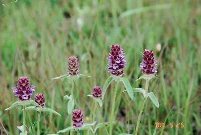 藤白台水路のウツボグサが青紫色の美しい花をつけはじめた。 チガヤの白色、ミヤコグサの黄色の中で、青紫色がひときわ目立っていた。