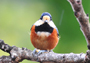| きれいな声で鳴くイソヒヨドリ♀ | 柿喰うアオゲラ | 実を食べるルリビタキ♂ | ヤマガラの正面顔 | モミジの種子を食むシメ |