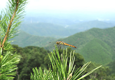 いつもの観察地では6月ごろアキアカネの羽化が見られるが今年はどうしたことか見損なってしまった。大阪北部の深山にトンボの観察に出かけたが、頂上では夏の暑さを避けてやって来たアキアカネが樹の枝先、笹の先端などに多く見られた。 山を下るとその数は急激に減少していった。
