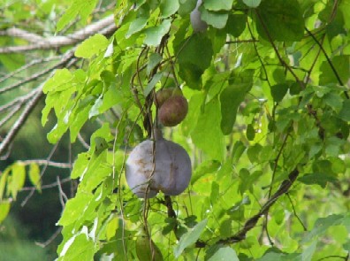 山を歩いているとアケビの実がぶら下がっているのが目につく。