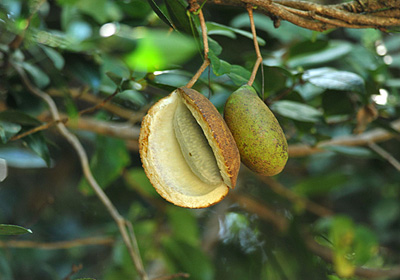 8月中旬頃から目立ち始めたアケビの実が、この日は皮が割れているのが何個か見られた。まだ割れていない方が多かったが数日もするとほとんど割れ出し、中の果肉も小鳥などに食べられることだろう。