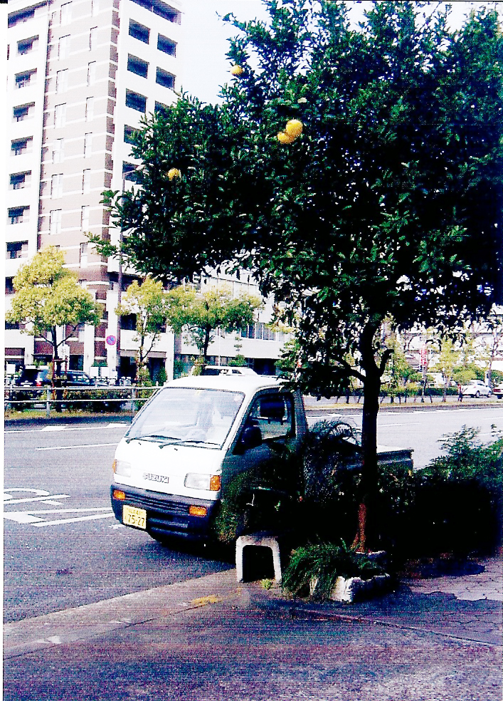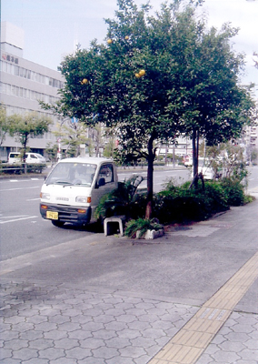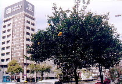 谷町筋(地下鉄谷町線四天王寺夕陽丘駅C番)大きな実をつけて、寒中に立っています。