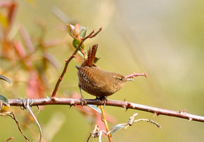 ミソサザイはウグイスのような地鳴きをするのでその存在は分かるが、茶褐色の小さな身体で動きも早く樹から樹へさっと移動し、出遭っても樹木の中や溝などの穴に隠れてしばらくは出てこない。動きも早く写真を撮るのがやっかいな小鳥。再び姿を現すまで根比べでこちらもじっと待機していると出てきて枝の上で周りを警戒しながら見回しているところを撮った。