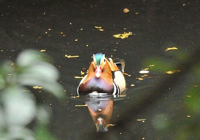 山裾にある雑木林に囲まれた小さな溜池に11月の初めからオシドリの群が棲みついてる。ところが警戒心が非常に強く近寄って少しでも音をたてると気がつき逃げてしまう。この日も最初に3羽に逃げられ残ったうちの一羽が写真の雄。見ていると警戒しているがまだ仲間がいるので逃げず時々合図の鳴声を発している。いつも逃げているところを写真に撮るので後ろ姿が多いがこの日は仲間に近づくためにこちらに向かって来たので正面の顔となった。 撮影者:横田 靖さん 撮影場所:池田市東山町(2010.11.18) 目次へもどる / 次の写真へ |